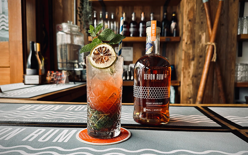 Our Honey Spiced Rum is hand-crafted in the heart of Devon, using locally sourced wildflower honey, a blend of exotic Caribbean rums, subtle spices and crisp Devonian spring water.